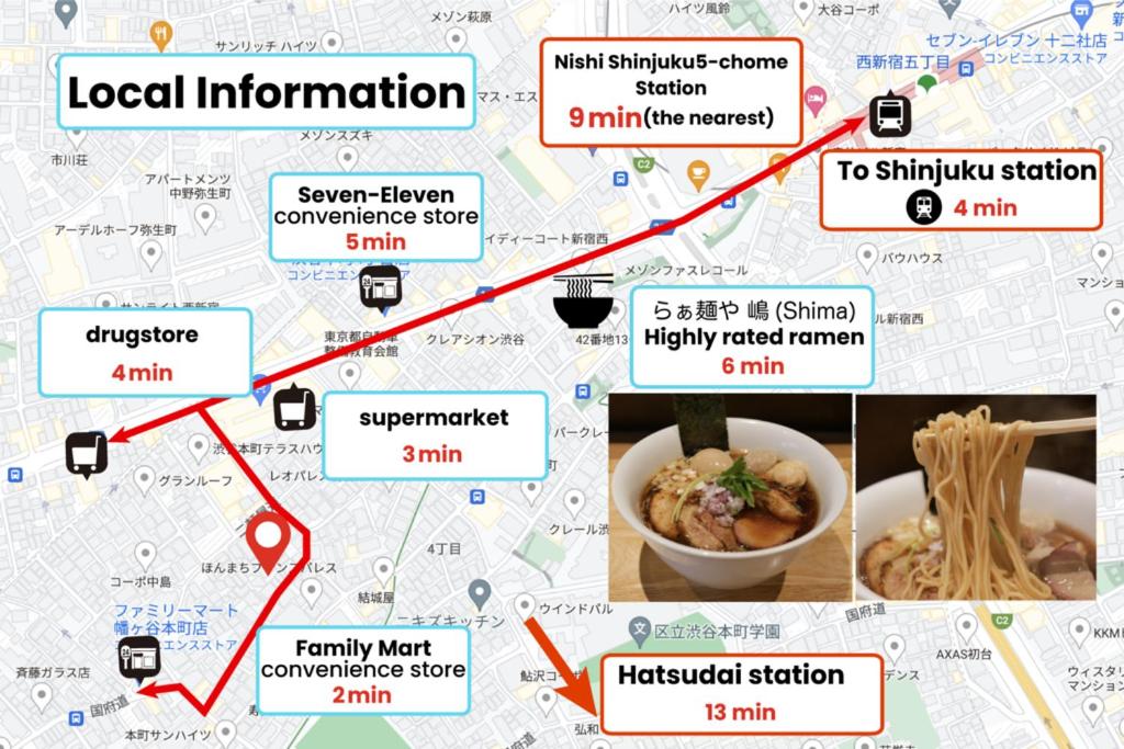 Popular points of interest near Compact 2DK in west Shinjuku include Shogonji Temple, Minamidaiicho Park and Kumano Shrine. Tokyo Haneda Airport is 21 km away.