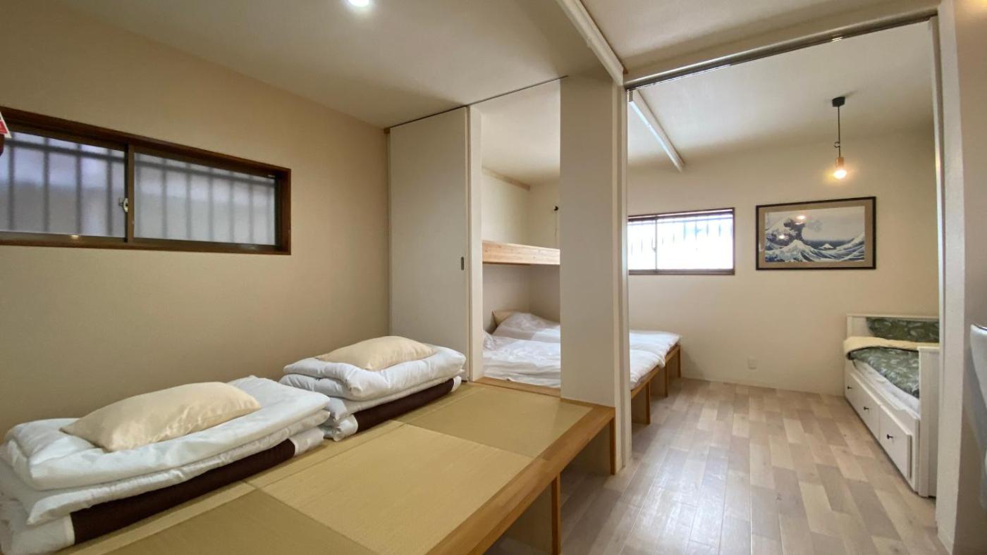 Four-Bedroom Apartment. Featuring a private entrance, this spacious apartment also comprises 4 bedrooms, a seating area and 2 bathrooms with a shower and a hairdryer. In the fully equipped kitchen, guests will find a stovetop, a refrigerator, kitchenware and a microwave. The air-conditioned apartment provides a flat-screen TV, tatami, a tea and coffee maker and a dining area. The unit offers 2 beds and 14 futons.