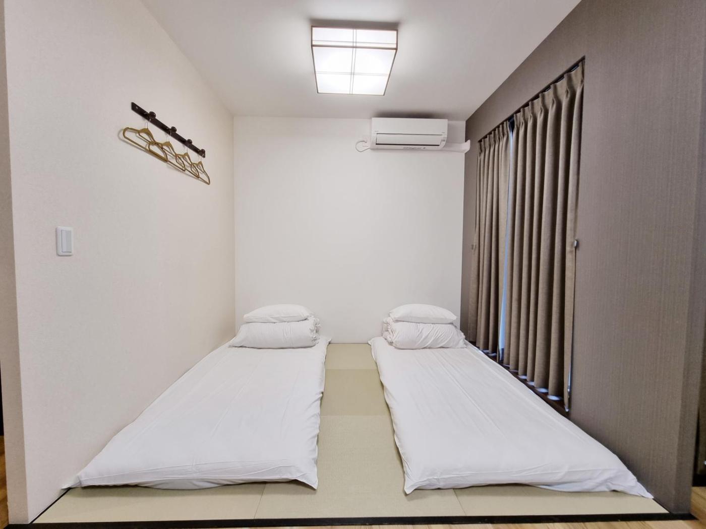 Family Room with Private Bathroom. The family room provides air conditioning, a washing machine, as well as a private bathroom featuring a bath and a shower. The family room features tatami, a seating area, an electric kettle, a carpeted floor and a TV. The unit offers 2 beds and 3 futons. ;