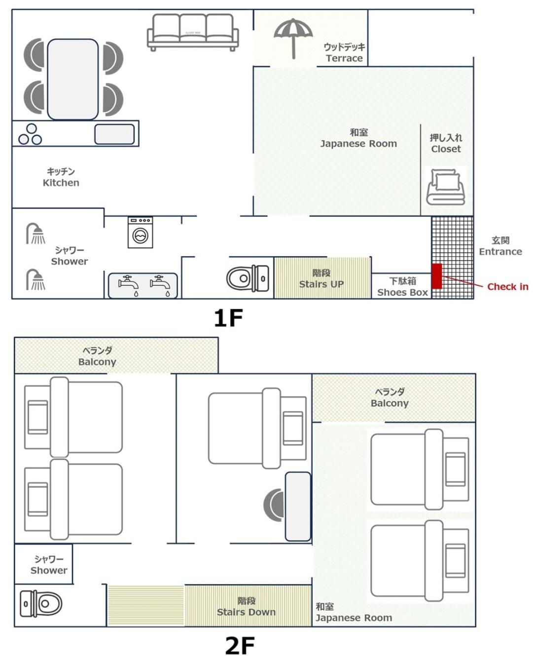 Four-Bedroom House. Boasting a private entrance, this air-conditioned holiday home features a kitchen, 4 bedrooms and 2 bathrooms with a shower and a hairdryer. In the well-equipped kitchen, guests will find a stovetop, a refrigerator, a microwave and a tea and coffee maker. This holiday home has a washing machine, tatami, a flat-screen TV and a terrace. The unit has 3 beds and 3 futons.