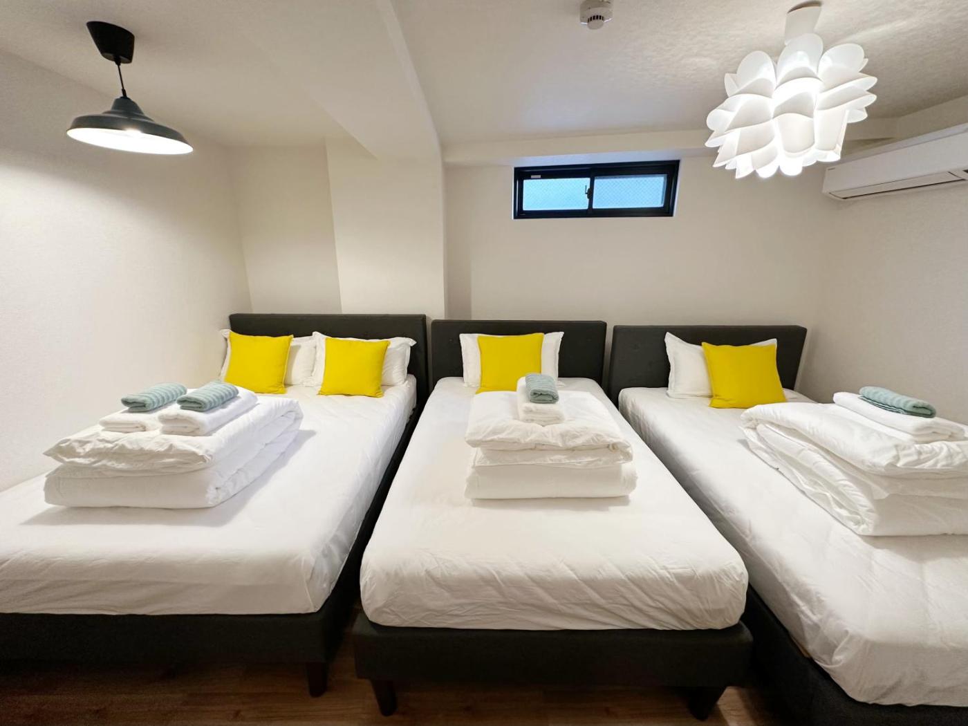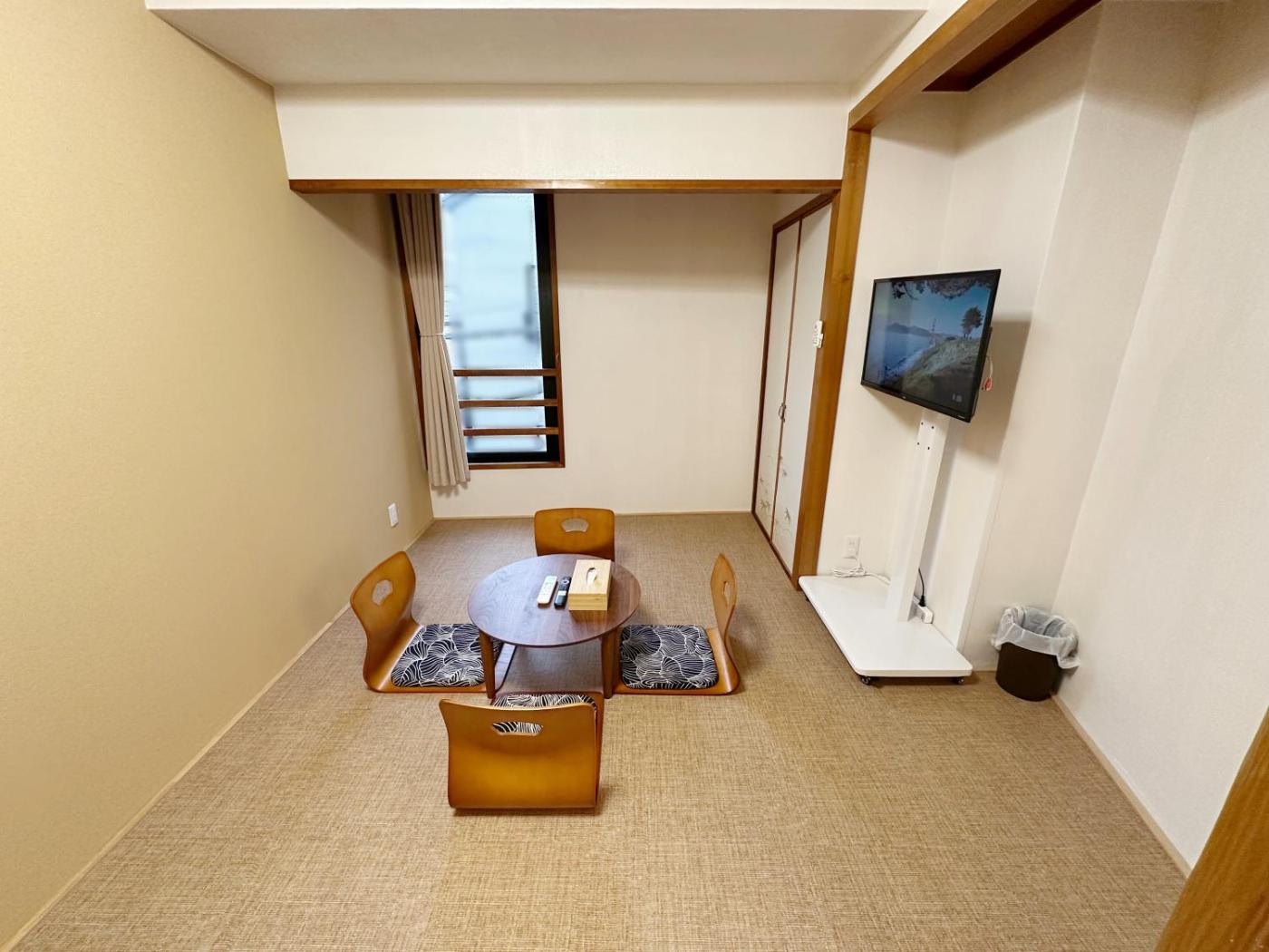 Two-Bedroom Apartment. The air-conditioned apartment features 2 bedrooms and 1 bathroom with a walk-in shower and a bidet. The well-fitted kitchenette has a refrigerator, kitchenware, a microwave and an electric kettle. Featuring a balcony, this apartment also provides a washing machine, tatami and a flat-screen TV. The unit offers 5 beds.
