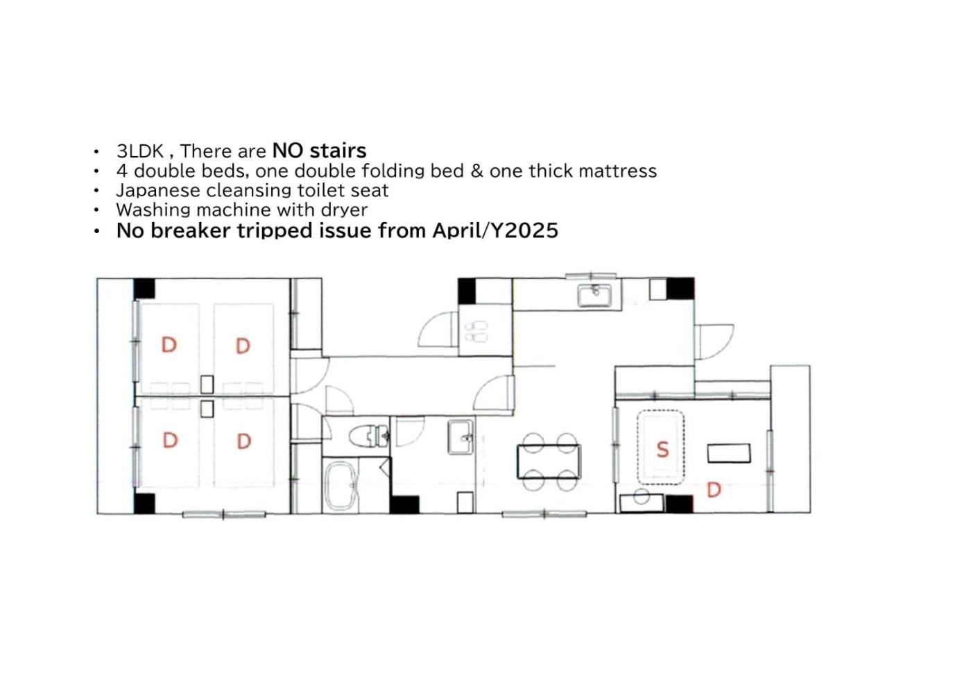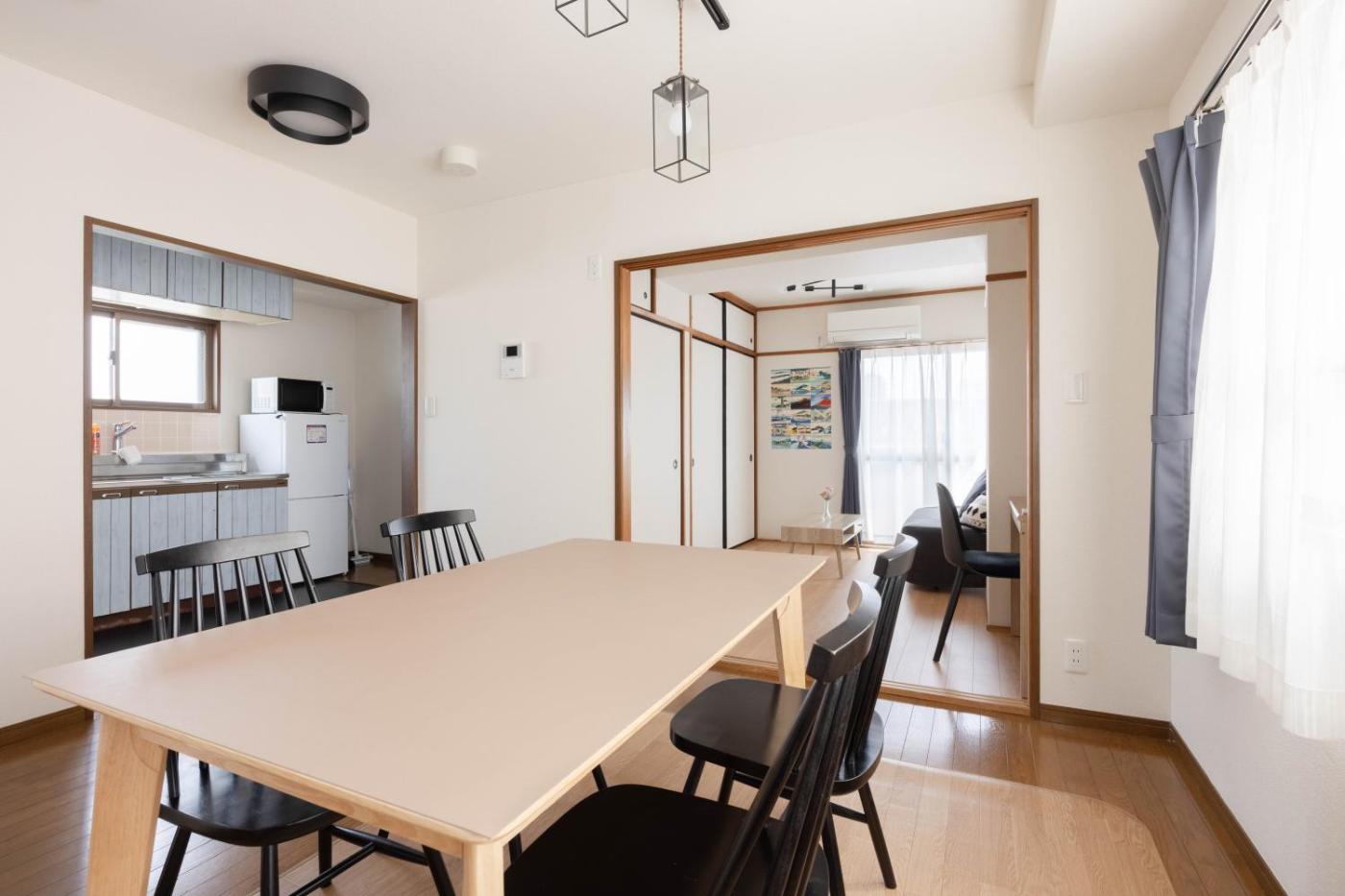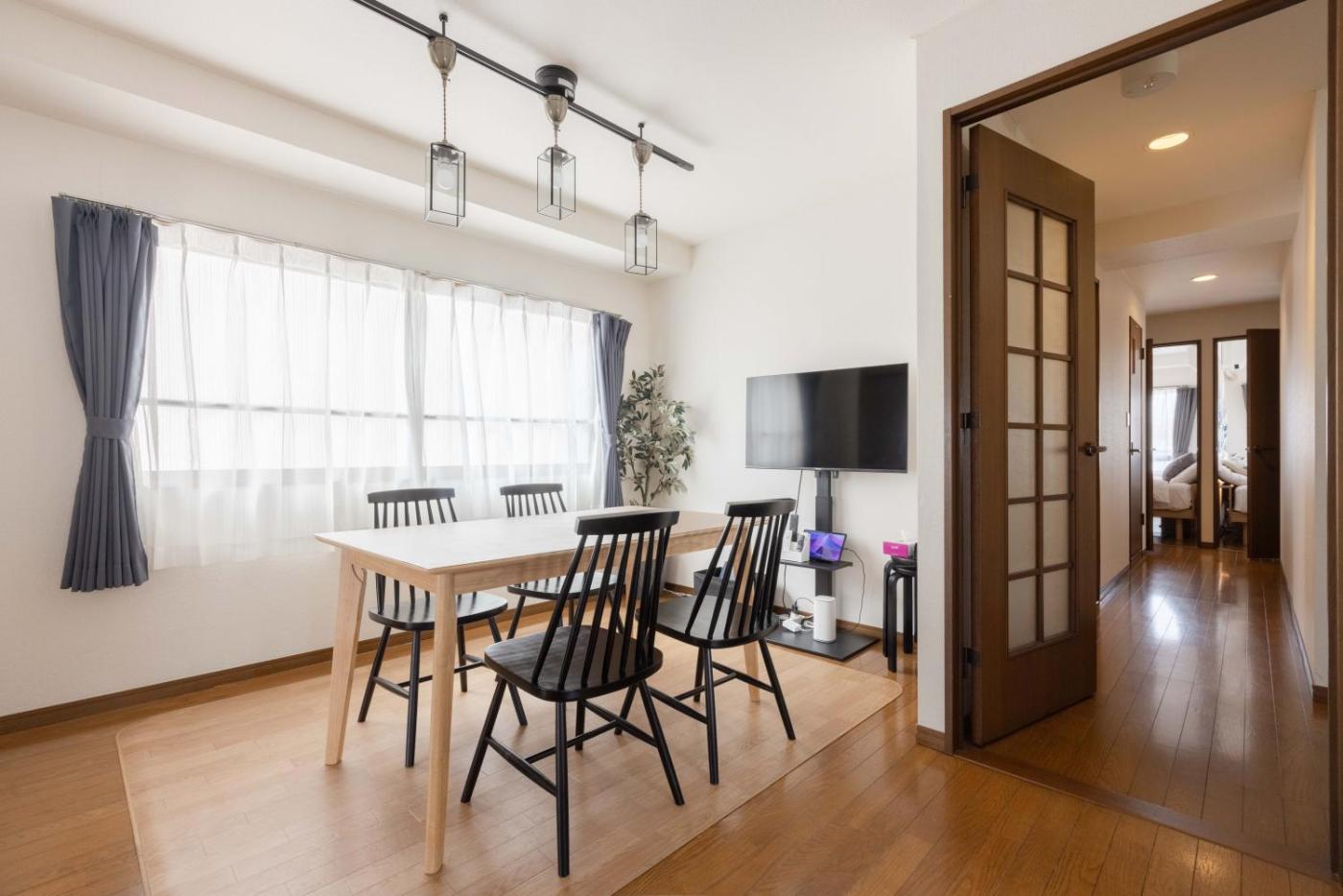 Two-Bedroom Apartment. This spacious apartment features 3 bedrooms, a kitchen and 1 bathroom with a bath and a bidet. Guests can make meals in the kitchen that has a stovetop, a refrigerator, kitchenware and a microwave. The apartment features air conditioning, a washing machine, a tea and coffee maker, a dining area, as well as a flat-screen TV. The unit has 5 beds and 1 futon.