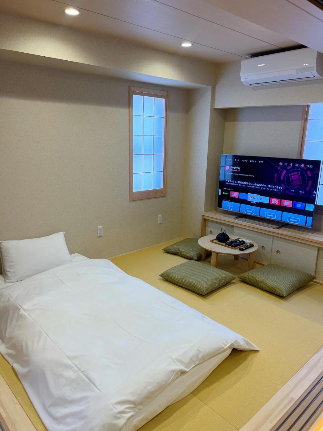 One-Bedroom Apartment. This apartment comes with 1 living room, 1 separate bedroom and 1 bathroom with a shower and free toiletries. In the fully equipped kitchen, guests will find a refrigerator, kitchenware, a microwave and an electric kettle. The apartment features air conditioning, a washing machine, tatami, a dining area and a flat-screen TV. The unit has 1 bed and 4 futons. ;