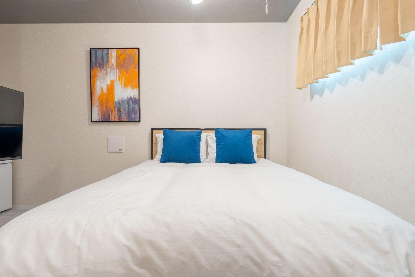One-Bedroom Apartment. The air-conditioned apartment has 1 bedroom and 1 bathroom with a bath and a shower. Guests can make meals in the kitchen that is fitted with a stovetop, a refrigerator, a microwave and an electric kettle. The apartment offers a washing machine and heating. The unit has 1 bed. ;