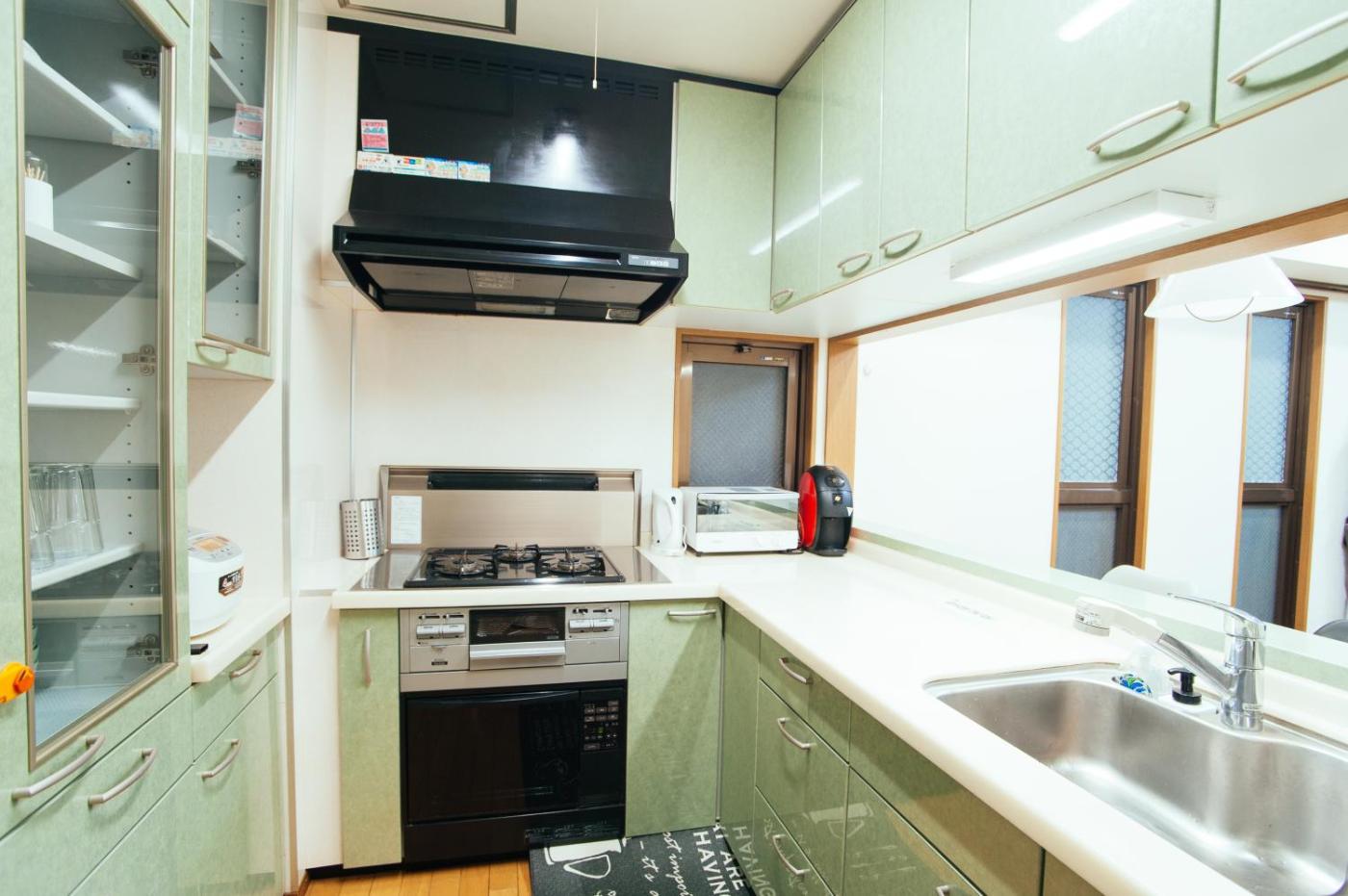 Japanese-Style Room. The fully equipped kitchen has a stovetop, a refrigerator, kitchenware and an oven. The spacious family room features air conditioning, a washing machine, a balcony with ancourtyard view as well as a private bathroom boasting a walk-in shower. The unit has 9 futons.
