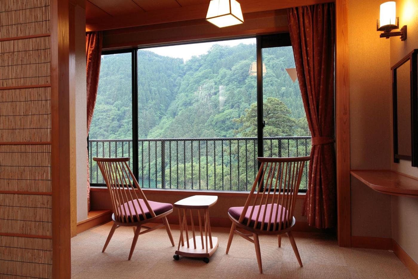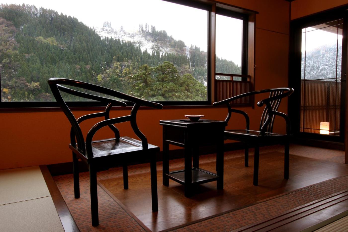 Superior Japanese-Style Room with Open-Air Bath. This quadruple room features a private open-air bath. The quadruple room features air conditioning, tatami, as well as a private bathroom boasting a bath and a bidet. The quadruple room provides a flat-screen TV, a wardrobe, a safe deposit box, an electric kettle as well as mountain views. The unit has 4 futons. ;