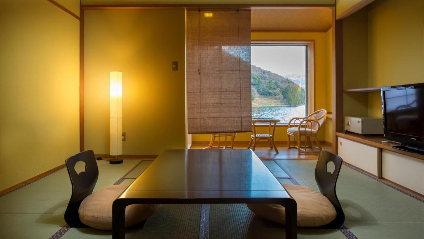 Japanese-Style Quadruple Room. Room featuring lake views, a tatami (woven-straw) floor and Japanese futon bedding. Each room features a fridge, an electric kettle and yukata robes. Toilets and bathing facilities are shared.