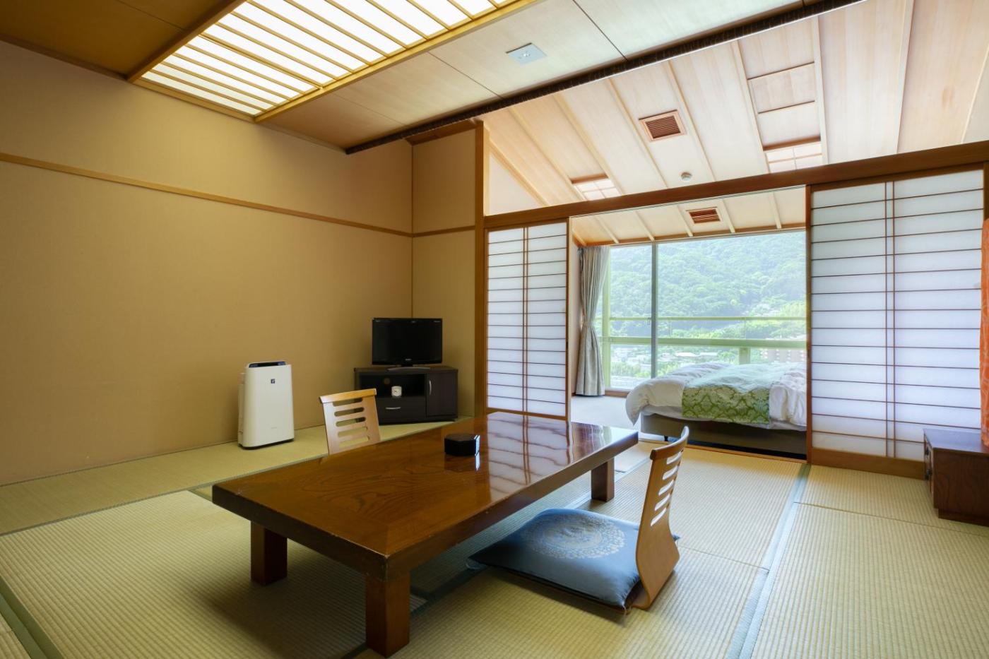 Double Room with Mountain View. The spacious air-conditioned double room provides a flat-screen TV, tatami, a tea and coffee maker, a safe deposit box as well as mountain views. The unit offers 1 bed. ;