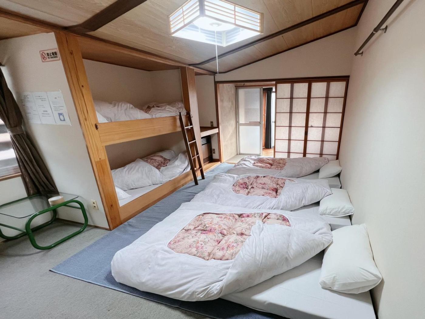 Family Room with Shared Bathroom. Offering free toiletries, this family room includes a shared bathroom with a shower, a hairdryer and slippers. Among the room amenities are tatami, a tea and coffee maker, a dining area as well as a patio and mountain views. The unit has 2 beds and 3 futons. ;